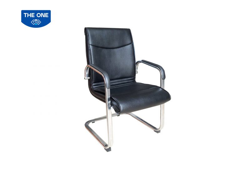 Ghế phòng họp khung chân thép mạ, đệm tựa liền bọc PVC màu đen.